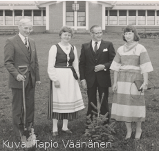 Kiihtelysvaara-Seuran istuttama kuusi Kiihtelyspirtin pihalla kunnantalon vihkiäisjuhlassa